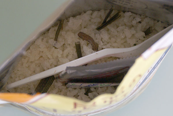 お湯の場合は15分、水の場合は60分(長い!!)待つとできあがりです。袋を開けて、よくかき混ぜて食べます。
