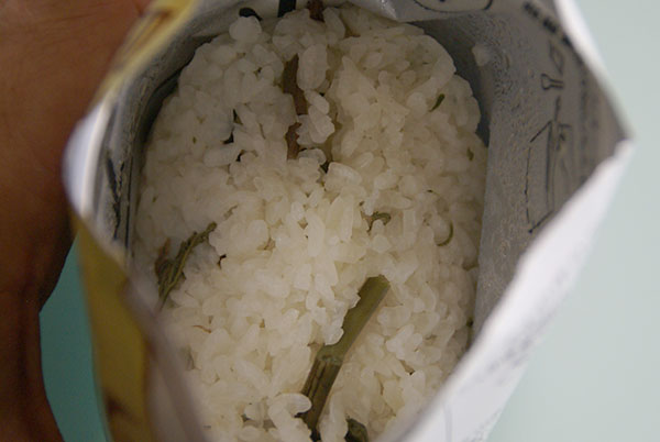 お湯で作ったならではのホカホカの山菜ごはんができました。味も非常食とは思えないほどです。ただ、作った際は、注水後によくかき混ぜなかったためか、味に少しムラが出来てしまいました…。